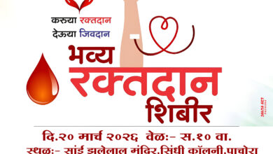 रक्तदान हे सर्वात श्रेष्ठदान जिल्हा जळगाव तालुका पाचोरा : चेट्रिचंद्र (सिंधी समाजाचे ईष्टदेव भगवान झुलेलाल जी यांचा जन्मदिवस) व गुढीपाडवा (हिंदू नववर्ष) निमित्त पुज्य सिंधी जनरल पंचायत, पाचोरा यांच्या वतीने रक्तदान शिबिराचे आयोजन करण्यात आले आहे रक्तदान करणाऱ्या रक्तदात्यांनी आपले योगदान द्यावे ही विनंती