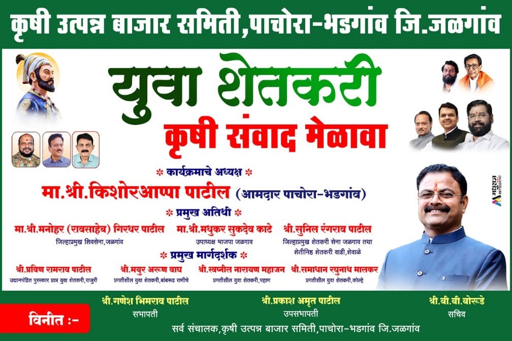 पाचोरा कृषी उत्पन्न बाजार समितीकडून युवा शेतकरी संवाद मेळाव्याचे आयोजन पाचोरा भडगाव तालुक्यातील आगामी खरीप हंगामाच्या पार्श्व भूमीवर शेतकरी वर्गाला महत्त्वपूर्ण मार्गदर्शन जिल्हा जळगाव ता पाचोरा_ भडगाव आमदार किशोर पाटील त्यामध्ये एक महत्वपूर्ण विषय घ्यावा महाराष्ट्राचे मुख्यमंत्री देवेंद्र फडवणीस यांनी 31 जिल्ह्यांना शेतकरी कर्जमाफी केली बाकीचे जिल्हे वंचित का आमदारांनी हा विषय घ्यावा अशी शेतकरी वर्गातून चर्चा