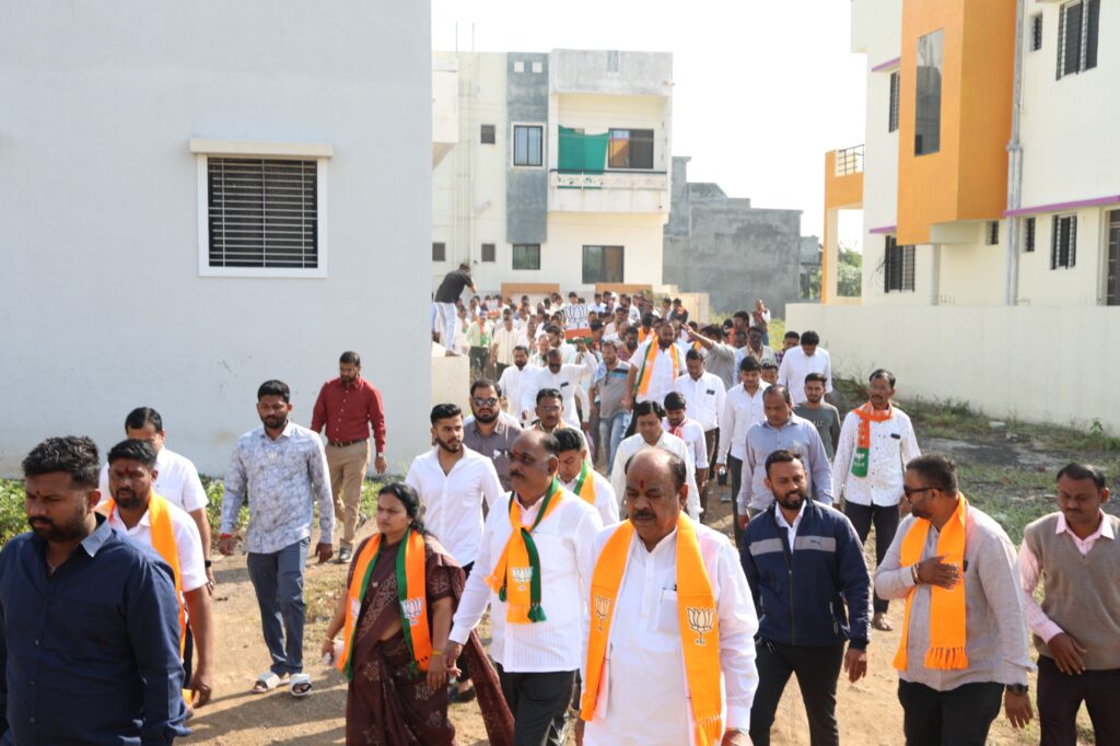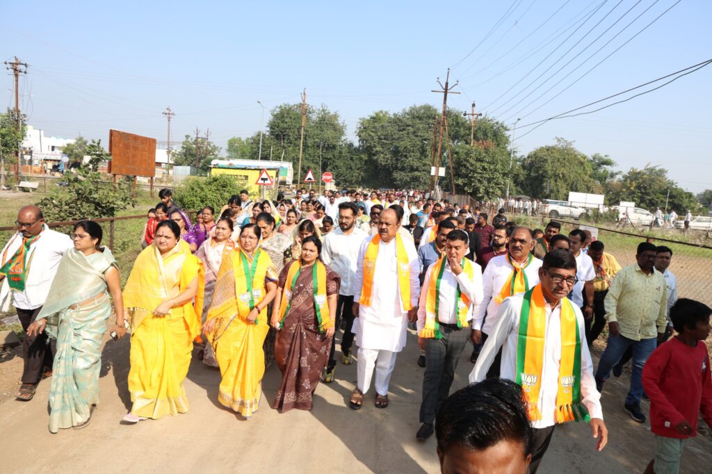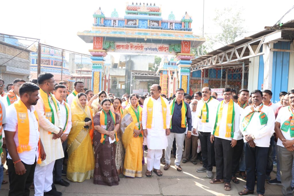 जिल्हा जळगाव तालुका पाचोरा नगर परिषद सार्वत्रिक निवडणुकीच्या प्रचाराचा भव्य शुभारंभ आज कैलामाता मंदिर येथे माजी आमदार मा. दिलीपभाऊ वाघ सौ. वैशालीताई सुर्यवंशी व अमोलभाऊ शिंदे यांच्या प्रमुख उपस्थितीत झाला मंगलमय वातावरणात महाआरती करून व नारळ वाढवून या प्रचार शुभारंभाला सुरुवात करण्यात आली त्यानंतर नगराध्यक्ष पदाच्या उमेदवार सौ. सुचेताताई दिलीप वाघ व प्रभाग क्र. १० मधील नगरसेवक पदाचे उमेदवार श्री सुरज संजय वाघ आणि सौ. सीमा समाधान पाटील यांच्या प्रचारार्थ मध्ये भव्य प्रचार रॅली काढण्यात आली रॅलीला भारतीय जनता पक्षाचे पदाधिकारी कार्यकर्ते ज्येष्ठ नागरिक तसेच असंख्य मतदारांनी उत्स्फूर्त प्रतिसाद देत मोठ्या संख्येने सहभाग नोंदविला या रॅलीमुळे परिसरात उत्साह जोश आणि आत्मविश्वासाचे वातावरण निर्माण झाले