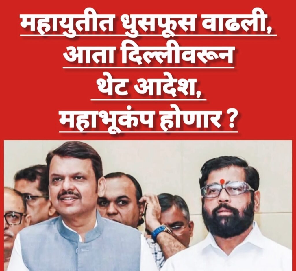 महायुतीत मोठे वादळ येणार का? महायुतीतील 3 पक्ष आता 3 ध्रुव होण्याच्या प्रयत्नात दिसत आहे एकमेकांविरुद्ध सभेमध्ये बोलत आहे स्थानिक स्वराज्य नगरपालिका निवडणुकीपूर्वी भाजप पक्षांने शिंदे सेनेला अनेक ठिकाणी सुरंग लावले पक्षफोडीमुळे झालेल्या गैरवर्तन पक्षाच्या दृष्टिकोनातून अहितकारक असून महायुती टिकवायची की नाही पक्ष टिकवण्यासाठी एकनाथ शिंदे यांच्या समोर मोठा पेच निर्माण झाला आहे नगराध्यक्ष पदाचे उमेदवारच नाही तर जिल्हा अध्यक्ष सुद्धा पळवण्याचा प्रयत्न होत असल्यामुळे शिंदे सेनेच्या डोक्याला ताप वाढला त्यामुळेच अनेक ठिकाणी नगरपालिका मध्ये युती तुटली त्याचे परिणाम म्हणजेच जागावाटप युती धर्म पाळला जात नसून दोन पक्ष दोन ध्रुव अशी परिस्थिती झाली आहे एकनाथ शिंदे यांनी दिल्ली वारी करून थेट आदेश आणले त्याचा काही उपयोग झाला नाही शेवटी महायुती महाभूकंप होणार का? शेवटचा सल्ला मोठे वादळ येणार हेच दिसत आहे एकमेका विरुद्ध दंड थोपटले कोण सिंघम पिक्चर चे डायलॉग तर नायक पिक्चर चे डायलॉग समोर येत आहे यातच कोणाची भूमिका निर्णायक ठरणार?