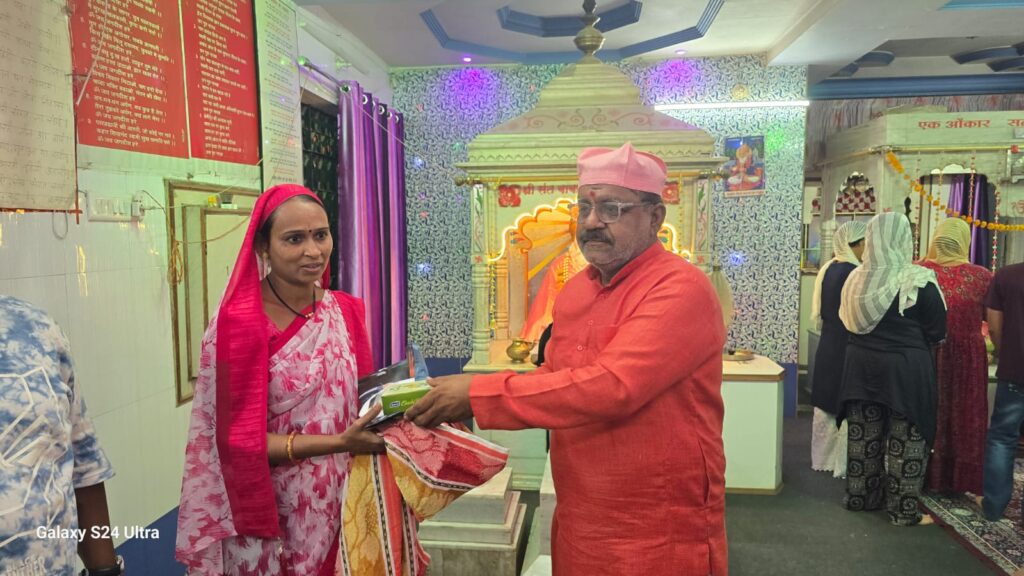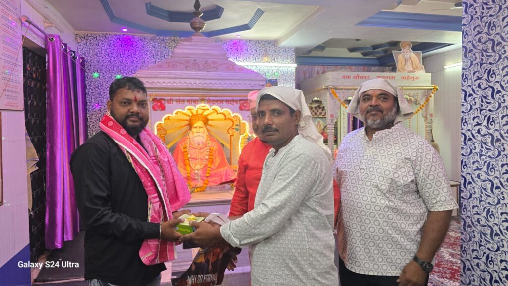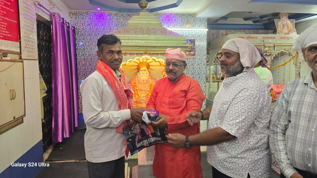 जिल्हा जळगाव तालुका पाचोरा सिंधी बांधव नगरसेवक श्री गोपालदास अर्जुनदास वासवाणी सोबत बाबा मेठाराम मंदिराचे गद्दीनशीन भाई हिरादास उदासी व मित्र परिवारांनी संयुक्तरित्या आज सिंधी समाजाचे ईष्टदेव वरूण अवतार भगवान झुलेलाल यांचे 1076 वा जन्मोत्सव निमित्त पाचोरा नगरपरिषदचे सफाई कर्मचारी यांना रूमाल व मिठाई देऊन मनापासुन सत्कार केलाया प्रसंगी नगरसेवक श्री गोपालदास अर्जुनदास वासवाणी यांनी असेही सांगितले की,स्वच्छता ही केवळ जबाबदारी नसून ती आपल्या संस्कारांचा एक महत्त्वाचा भाग आहे समाज निरोगी आणि सुंदर ठेवण्यासाठी सफाई कर्मचाऱ्यांचे योगदान अमूल्य आहे त्यांच्या अथक परिश्रमामुळेच आपले शहर स्वच्छ आणि सुंदर राहते आपण सर्वांनी त्यांच्या कार्याचा सन्मान ठेवत स्वच्छता राखण्याचा संकल्प करूया.