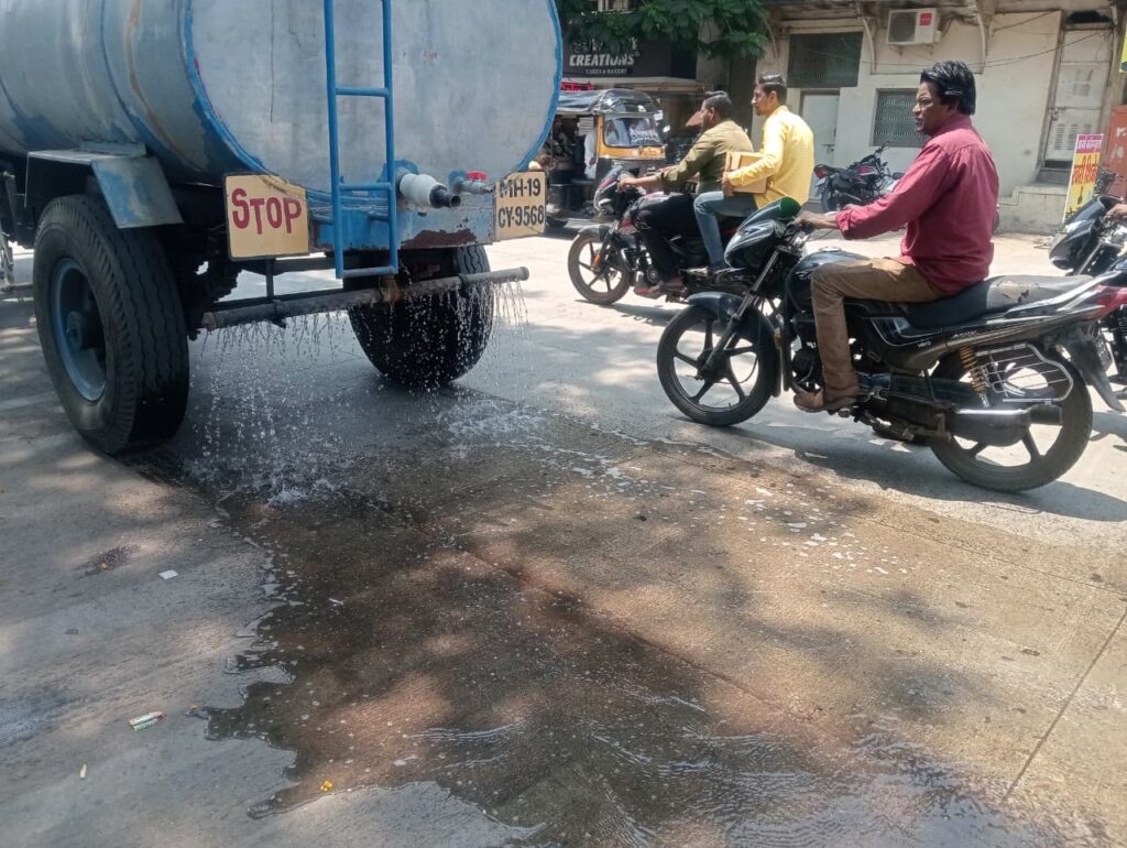 जळगाव: शहरात सध्या उन्हाचा तडाखा मोठ्या प्रमाणावर वाढला असून तापमानाचा पारा ४२ अंशांच्या पुढे गेला आहे. या वाढत्या उष्णतेपासून नागरिकांना काहीसा दिलासा मिळावा आणि शहरात थंडावा निर्माण व्हावा, यासाठी जळगाव शहर महानगरपालिकेतर्फे शनिवारी (२५ एप्रिल) दुपारी शहरातील प्रमुख चौकांमध्ये टँकरद्वारे पाणी मारण्यात आले. महापौर दीपमाला काळे यांच्या निर्देशानुसार आणि शासनाच्या मार्गदर्शक सूचनांचे पालन करत महानगरपालिकेने ही मोहीम राबवली.दुपारच्या कडक उन्हात रस्ते तापल्याने निर्माण होणारी उष्णता कमी करण्यासाठी दोन टँकरच्या मदतीने महत्त्वाच्या ठिकाणी पाणी मारण्यात आले. हे २ टँकर महापौर दीपमाला काळे यांनी त्यांच्यावतीने उपलब्ध करून दिले होते. यात चित्रा चौक, कोर्ट चौक, नवीन बस स्टँड परिसर,आकाशवाणी चौक, काव्यरत्नावली चौक, नेहरू चौक, टॉवर चौक या कार्यवाहीमुळे परिसरात काही अंशी थंडावा निर्माण झाला असून, रस्त्यावरून ये-जा करणाऱ्या वाहनधारकांना व नागरिकांना उष्णतेच्या लाटेपासून तात्पुरता दिलासा मिळाला आहे.ही मोहीम यशस्वी करण्यासाठी शहर अभियंता योगेश बोरोले, पर्यावरण विभागाचे अधिकारी प्रकाश पाटील यांच्यासह महापालिकेचे इतर अधिकारी व कर्मचारी प्रत्यक्ष रस्त्यावर उपस्थित होते. आगामी दिवसांत उष्णतेची तीव्रता पाहता अशाच प्रकारे उपाययोजना राबवण्याबाबत महापालिका प्रशासन विचार करत आहे.